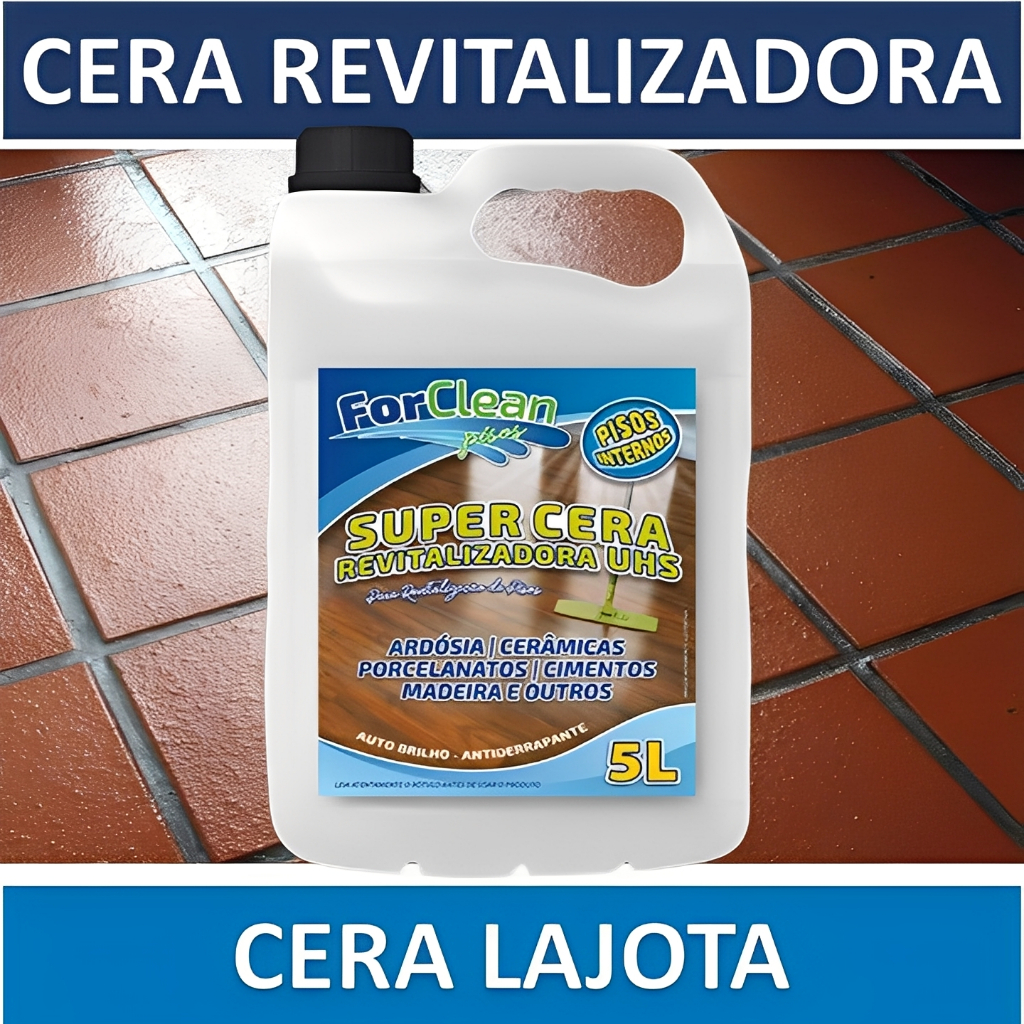 Cera Acrílica Premium For Clean Ideal para pisos: Lajotas Auto tráfego, incolor, antiderrapante, Brilhante • 1 Galão de 5 Litros. 1 Litro Rende até 60m2 Especialmente desenvolvida para Revitalizar Pisos sem brilho e riscos superficiais. Deixando o piso com aspecto de novo e brilho. Possuí suave perfume. Contém em sua fórmula 5% de polímeros acrílicos em sua composição. Fácil uso e protege contra o desgaste diário do seu piso. • Modo de uso: Despeje Cera diretamente sobre um pano e um pouco também sobre o piso (também pode ser usado o aplicador de cera de espuma). Espalhe sobre a superfície de forma uniforme, formando uma fina camada úmida, e deixe secar por 10/15 minutos. Qualquer pessoa consegue aplicar este produto domesticamente, mesmo sem ter experiência, apenas seguindo nossas recomendações. • Recomendações Especiais (evite danos em seu piso) • - Não deixe secar excesso do produto sobre o piso. • - O piso estará pronto para uso imediatamente após aplicação. Rendimento: Até 60 m² por litro • Obs.: Em pisos de Cimentos ou Madeira completamente isento de cera ou após remoção completa, o melhor resultado ocorrerá após a 5ª camada, observando o intervalo de 15/20 minutos entre as aplicações. Aplicar com rolo de pelo curto. Prático e econômico.