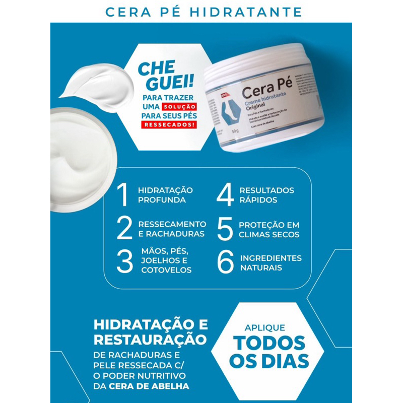 | CERA PÉ CREME HIDRATANTE ORIGINAL 50g este produto | R$ 29,90 | — | 4.9/5 | — |