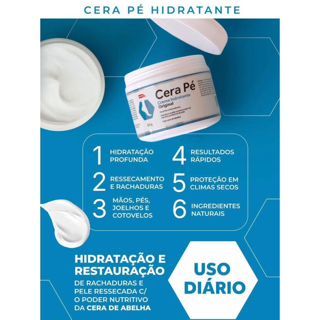 | Cera Pé Creme Hidratante Restaurador Pés E Rachaduras 50g este produto | R$ 29,35 | — | 4.9/5 | 6 |
