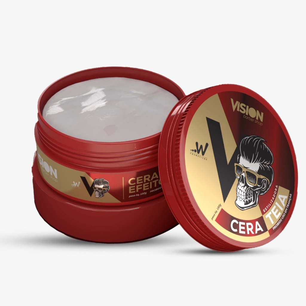 DETALHE DA COMPRA: POMADAS MODELADORA 130G VISION SOBRE OS PRODUTOS: A Cera Incolor Vision é excelente para finalizar, modelar e fixar o penteado deixando um aspecto natural com brilho. A Cera Teia Vision ( Efeito Seco / Opaco) finaliza e modela o penteado deixando um aspecto natural, e com uma fixação extra forte. A Cera Matte Vision ( Efeito Seco / Opaco) finaliza e modela o penteado deixando um aspecto natural. A Cera Caramelo Vision também tem efeito brilho, porém com fixação ainda mais forte. A Cera Black Vision é pigmentada e escurece fios grisalhos e disfarça falhas. A Cera Extra Forte Vision é excelente para finalizar, modelar e fixar o penteado deixando um aspecto natural com brilho.