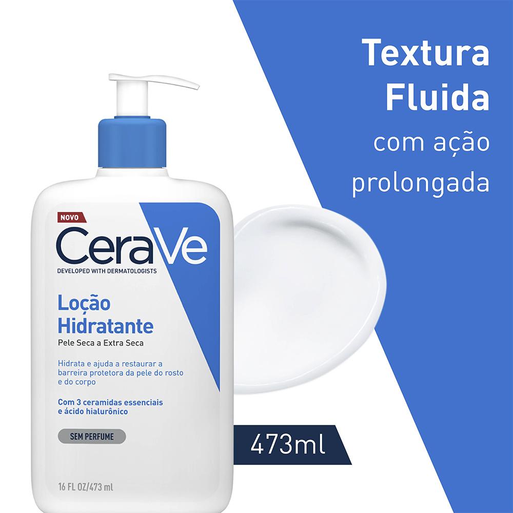Desenvolvido com dermatologistas, a loção hidratante de CeraVe possui textura fluida de rápida absorção, além de hidratar e ajudar na restauração da barreira protetora da pele.A Loção Hidratante para o corpo e rosto de CeraVe ajuda a hidratar a pele e restaurar sua barreira protetora natural, além de ser leve e livre de óleos.Sua fórmula contém 3 ceramidas essenciais e ácido hialurônico que proporcionam alta hidratação e restauração da barreira da pele. A Loção Hidratante de CeraVe é não comedogênica e não obstrui os poros, além de possuir textura fluida de rápida absorção. Apresenta a patenteada Tecnologia MVE para liberação contínua de ingredientes, garantindo uma hidratação por 24 horas.- Textura Fluida - Ajuda a restaurar e manter a proteção da barreira natural da pele.- Liberação prolongada de ativos para uma hidratação que dura o dia todo.- Ajuda a reter a hidratação natural da pele.- Suave na pele: Fórmula de rápida absorção.- Não obstrui os poros.- Sem perfume.*Produto foi desenvolvido com base em informações e necessidades indicadas por dermatologistas. * PRECAUÇÕES: Manter fora do alcance de crianças. * MODO DE USO: 2 - Aplique uma quantidade generosa da Loção Hidratante CeraVe nas mãos2 - Massageie a parte desejada do corpo3 - Aproveite a profunda hidratação da sua pele * RESULTADO: Pele saudável * ITENS INCLUSOS: 1 Cerave Locao hidratante Corporal 473 Ml.