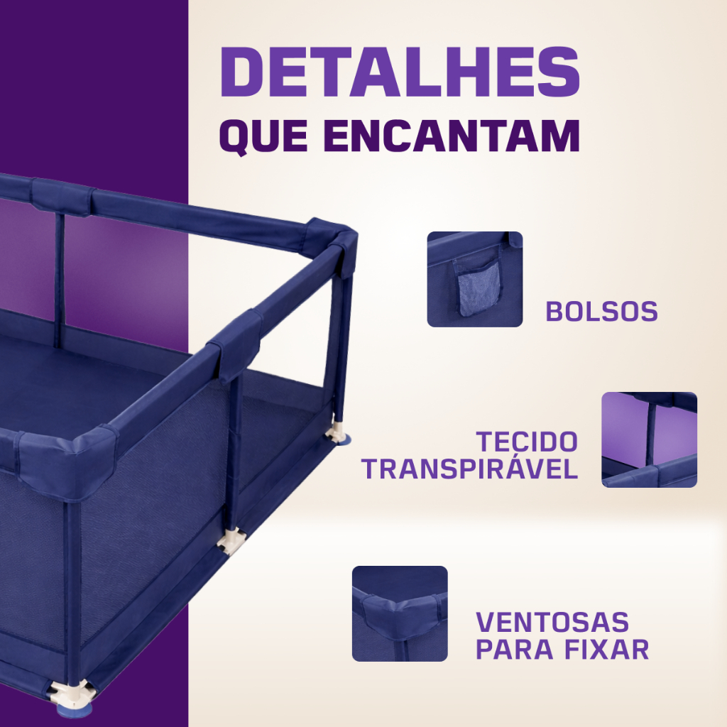 🧸 Cercadinho Infantil Pluggei Select – Seguro, Espaçoso e Confortável O Cercadinho Infantil Pluggei Select foi desenvolvido para proporcionar segurança para o bebê e tranquilidade para os pais. Espaçoso, resistente e fácil de montar, ele cria um ambiente protegido para brincar, engatinhar e explorar com liberdade. Disponível em 3 cores lindas: 💙 Azul 🤍 Cinza 💗 Rosa ✅ Segurança em Primeiro Lugar Estrutura firme e estável Cantos acolchoados para maior proteção Base com ventosas para melhor fixação no piso Material BPA Free Não fluorescente Resistente à transpiração e saliva Livre de formaldeído Idade adequada: 6 meses a 3 anos. Material: fibra de poliéster, hastes de aço, espuma e plástico. Mais cuidado para quem você mais ama ❤️ 📏 Medidas do Produto Altura: 60 cm Largura: 150 cm Comprimento: 180 cm Porta com zíper: 52 cm x 40 cm Espaço ideal para o bebê brincar com conforto e segurança. 👶 Conforto e Funcionalidade ✔ Tecido respirável em malha (visão 360°) ✔ Porta externa com zíper (abertura prática e segura) ✔ 4 pegadores internos para auxiliar o bebê a levantar ✔ Bolsos laterais para pequenos objetos ✔ Acompanha capa de transporte ✔ Acompanha tapete para engatinhar 🔧 Montagem Fácil Montagem simples Não precisa de ferramentas Estrutura leve e prática Ideal para usar na sala, quarto ou área interna. 🎯 Indicado para: Bebês que estão começando a engatinhar Primeiros passos Momentos de brincadeira com segurança 📦 Conteúdo da Embalagem 1 Cercadinho Infantil Pluggei Select 1 Tapete para engatinhar 1 Capa de transporte 4 Pegadores Garanta agora o Cercadinho Infantil Pluggei Select e proporcione um ambiente seguro, confortável e divertido para o seu bebê 🧸✨ Produto original | Envio rápido | Qualidade garantida