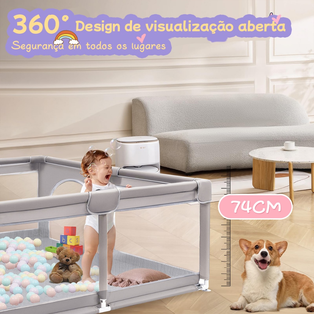 Cercadinho Bebê Grande Chiqueirinho Infantil Cercado 180x150 Seguro e estável, com ventosas na parte inferior. Preocupado com o fato de seu filho explorar a casa e sofrer acidentes? Esta cerca infantil está equipada com ventosas fortes na parte inferior, bem fixado em diversos tipos de piso seja madeira, azulejo ou carpete, pode se manter firme para garantir que a cerca não se mova nem caia. Torne a jornada de exploração do seu filho mais Segura. Altura moderada, protegendo o crescimento das crianças O design de segurança tem 68 cm, de acordo com a altura e as características de crescimento da criança, cuidadosamente projetado. Pode impedir que as crianças subam, mas não afetará a linha de visão e o espaço de atividades da criança. Deixe seu filho brincar livremente em um ambiente seguro e aproveitar sua infância. Seguro e amigo da pele Sabemos que a pele das crianças é delicada, por isso esta cerca é feita de materiais seguros e adequados para a pele, sem adição de agente fluorescente, para que as crianças fiquem mais confortáveis ao brincar. Ao mesmo tempo, é resistente ao suor e garante que a cerca permaneça limpa e bonita durante o uso prolongado. Tubo e conector de aço espessado, sólido e durável. A cerca é projetada com tubos e conectores de aço espessos, o que torna a estrutura estável e durável. Montagem simples e fácil A cerca adota um design simples e fácil, os pais podem concluir a montagem sem ferramentas. Torna o processo de instalação mais conveniente, economizando tempo. Capa de algodão macia e confortável. A lateral da cerca é equipada com uma janela visual, que é conveniente para os pais observarem a dinâmica do bebê a qualquer momento. Ao mesmo tempo, também equipamos a cerca com uma cuidada capa de algodão, macia e confortável, proporcionando proteção extra ao seu bebê. Escolha uma cerca infantil Segura, firme e confortável para seu filho. Escolha a nossa cerca infantil para dar ao seu filho um espaço seguro para crescer e tornar a companhia dos pais mais relaxante e agradável. Especificações da cerca: Tamanho da cerca montada (L x P x A): 180x160x68. Idade adequada: 6 meses a 3 anos. Material: fibra de poliéster, hastes de aço, espuma e plástico. Montagem: Fácil de montar, sem necessidade de ferramentas NOTA IMPORTANTE: Os tapetes, puxadores e bolas que aparecem em algumas imagens não estão incluídos.
