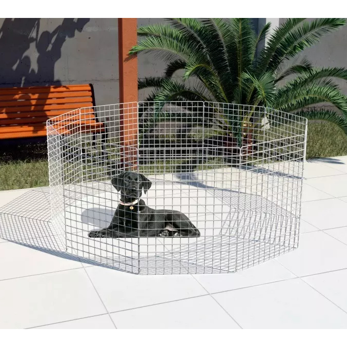 CERCADO ARTICULADO MÓVEL PARA PETS - TELAS 60x80cm 10 TELAS, MÚLTIPLAS POSSIBILIDADES Este cercado é composto por telas aramadas e abraçadeiras de nylon, tornando-o extremamente versátil. Ele pode ser configurado de diversas maneiras para atender às suas necessidades e, quando não estiver em uso, pode ser guardado de forma compacta para economizar espaço. Ideal para animais de pequeno e médio porte, como filhotes de cães e gatos, ou outros pets como coelhos e porquinhos-da-índia, respeitando as características da malha e o tamanho do animal. Também pode ser adaptado para uso como cerca ou portão, de acordo com as necessidades e adaptações realizadas pelo cliente. RECOMENDAÇÕES DE USO Filhotes de cães e gatos; Cães de pequeno e médio porte; Porquinhos-da-índia, mini coelhos e coelhos. ⚠ Importante: Certifique-se de que seu pet não consegue atravessar ou saltar pelo cercado antes de escolher o produto. DIMENSÕES APROXIMADAS / CONFIGURAÇÕES POSSÍVEIS **** 10 TELAS **** Cercado Retangular Opção 1: 180x120X80cm Cercado Retangular Opção 2: 240x160x60cm Cerca Linha Reta Opção 1: 80x600cm (6 metros) Cerca Linha Reta Opção 2: 60x800cm (8 metros)