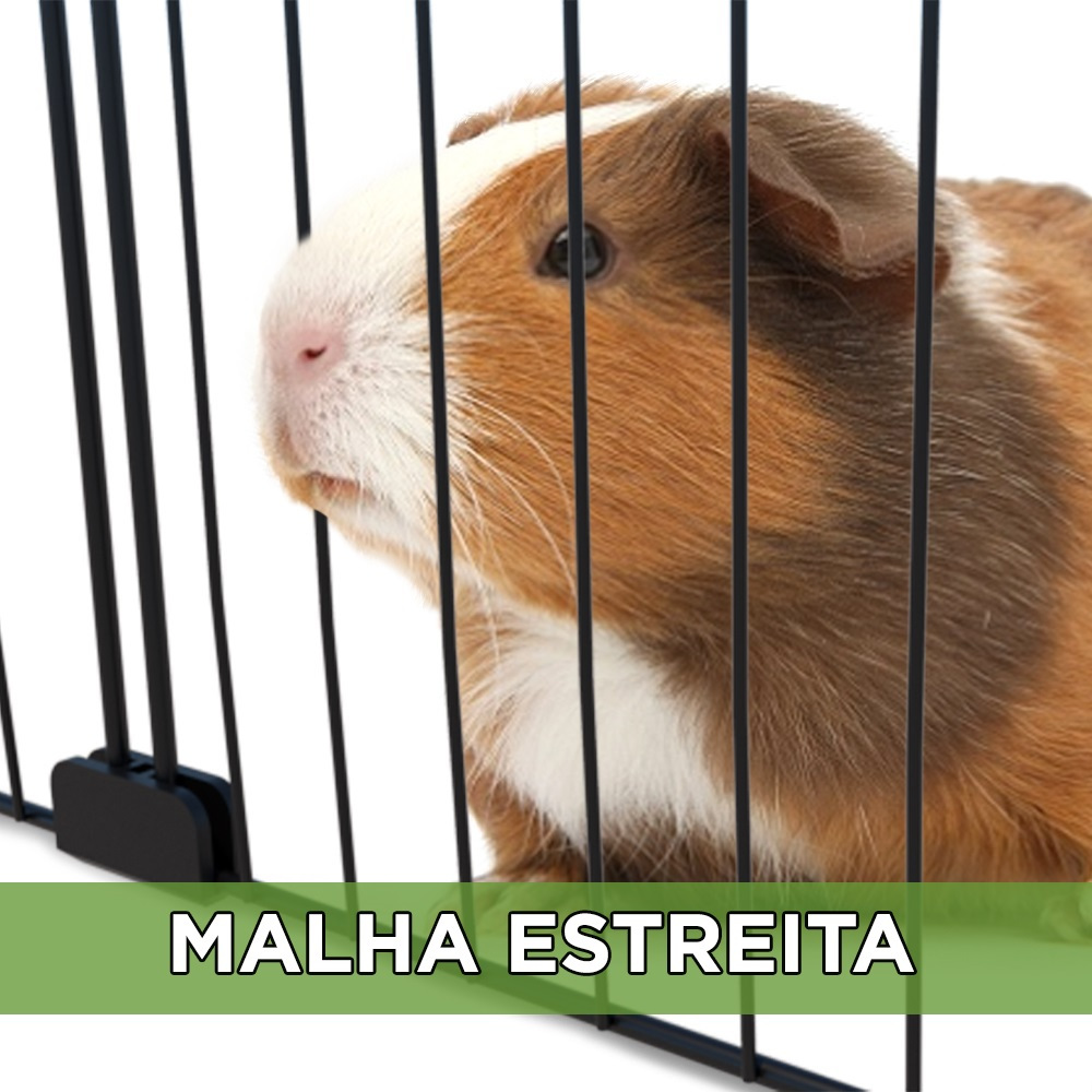 CERCADINHO CASA GAIOLA PET PARA COELHO PORQUINHO DA ÍNDIA CHINCHILA TARTARUGA COM TAPETE BANDEJA HIGIÊNICA IMPERMEÁVEL TELAS ARAMADAS PRETO OU BRANCO Esse cercadinho possui TELAS ESTREITAS, que são ideais para o seu amado Pet não escapar pelos vãos. Além de tudo, ele conta com uma incrível Bandeja Higiênica IMPERMEÁVEL. Isso mesmo, esse tapete higiênico em forma de bandeja é impermeável, o que impede que o xixi e outro líquidos passem para o piso ou onde ele estiver, além que que é muito, MUITO MAIS FÁCIL A LIMPEZA! Alguns tamanhos maiores possuem fitas autocolantes para auxiliar no encaixe, para deixar ainda mais seguro. TAMANHOS DISPONÍVEIS (Largura x Comprimento): *Todos possuem 30cm de altura - 60x90cm (16 Telas) - 60x120cm (20 Telas) - 90x120cm (26 Telas) CARACTERÍSTICAS: - Cor da Tela: Branco/Preto - Cor da Borda da Bandeja: Rosa, Preto, Azul, Vermelho, Laranja, Bege ou Cinza - Material da Tela: Aço - Tamanho das Telas: 30x30cm - Malha da Tela: 2,5x15cm - Modelo: Com teto - Forração: Tapete Higiênico - Fundo com Telas: Não ITENS INCLUSOS: - Kit de telas e conectivos para montagem de um cercado - 1 Tapete Bandeja Higiênico Impermeável * Procurou um modelo e não encontrou? Tem algum projeto específico? Não sabe como aumentar seu cercado? Deixe-nos saber e vamos te ajudar! OBSERVAÇÕES: - O produto vai desmontado para ser montado no local; - Para colocação dos conectivos é preciso fazer um pouco de pressão, por isso sugerimos o uso de um martelinho de borracha (não acompanha o produto). - Imagens ilustrativas - Não nos responsabilizamos pelo uso inadequado do produto. Possuímos vários modelos de cercados. Entre em contato.