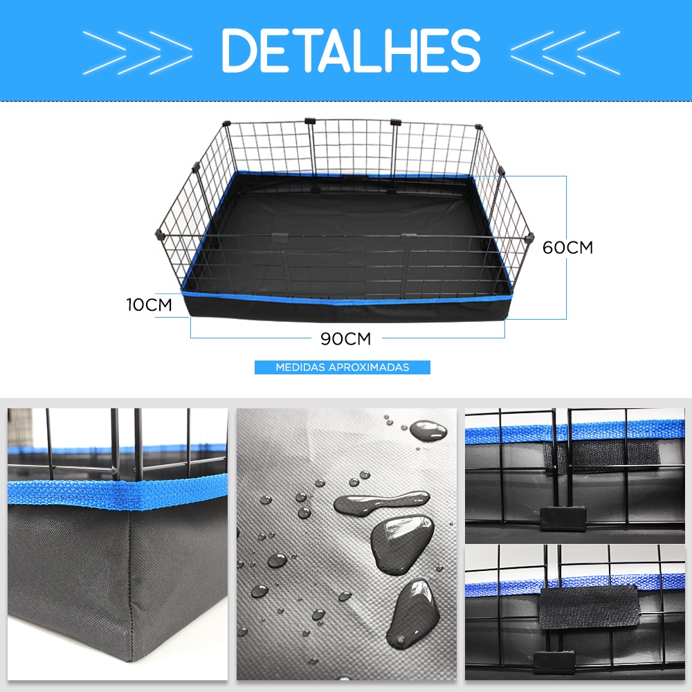 Cercado Pet Porquinho da Índia com Bandeja de Nylon Impermeável 60x90cm