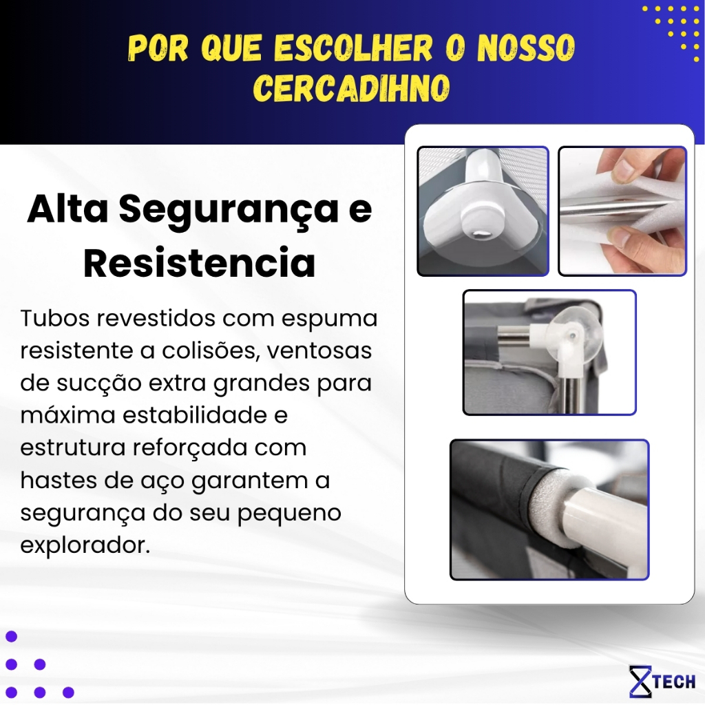 Cercadinho Infantil Tela de Proteção 2,00 x 1,50 m Azul – 8X TECH O Cercadinho Infantil 8X TECH é ideal para oferecer um espaço seguro e confortável para o bebê brincar e descansar, permitindo que os pais realizem outras atividades com mais tranquilidade. Com tamanho amplo, proporciona liberdade para a criança se movimentar com segurança dentro de casa, evitando acesso a áreas perigosas. Sua estrutura reforçada garante estabilidade e resistência para uso diário. Principais Benefícios: • Espaço amplo e seguro para brincadeiras • Estrutura resistente e estável • Laterais em tela para melhor visualização da criança • Material durável para uso diário • Fácil montagem e instalação • Ideal para salas, quartos e ambientes internos Indicado para: • Crianças a partir de 6 meses até aproximadamente 6 anos • Uso residencial e ambientes internos • Espaço seguro para brincadeiras e descanso Especificações Técnicas: • Marca: 8X TECH • Dimensões montado: 2,00 m x 1,50 m x 0,65 m • Formato: Retangular • Material: Tubos de aço, tecido Oxford e espuma protetora • Cor: Azul • Peso aproximado: 4,5 kg • Produto não dobrável, oferecendo maior estabilidade Conteúdo da Embalagem: • 1 Cercadinho infantil desmontável • Estrutura tubular • Telas laterais de proteção • Manual de montagem