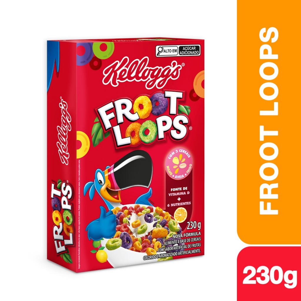 O cereal Froot Loops® da Kellogg's® oferece uma deliciosa mistura de cereais com o sabor de frutas. Este produto é um ótimo complemento para o café da manhã, junto com seu leite e frutas favoritas. Os cereais podem fazer parte de uma alimentação diversificada. As vitaminas e minerais presentes no produto incluem, ferro, zinco, vitaminas do complexo B e vitamina D. Você pode adicionar ao seu dia um momento Froot Loops®. Incorpore este cereal para começar seu dia ou nos lanches da manhã ou tarde. O cereal Froot Loops® possui aros frutidivertidos para colorir a primeira refeição do dia. Há diversas opções para compor os lanches, como as frutas que podem fornecer fibras, vitaminas e minerais, o leite ou iogurte que fornecem proteínas e cálcio e os cereais como os pães e biscoitos que fornecem carboidratos, dão energia e são alternativas interessantes e deliciosas para fazer parte deste momento. O cereal Froot Loops® da Kellogg's® pode ser adicionado ao longo do dia e compartilhado com toda sua família.