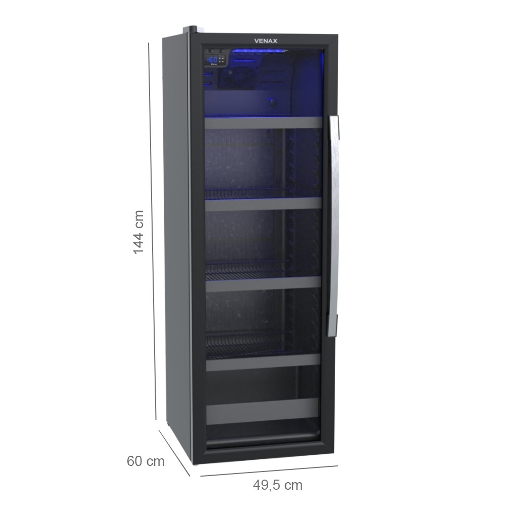 Refrigerador Expositor EXPVBL209 Porta Invertida*,Porta de Vidro Duplo Low-E com Aquecimento, Puxador em Alumínio Escovado, Controle de Temperatura Digital Regulável de -6ºC até 6ºC, Iluminação Interna em LED na Cor Azul, Prateleiras 4 Prateleiras Reguláveis, com Sistema de Refrigeração por Compressor. Características: - Marca: Venax - Ref.: 32167/32168 - Modelo: EXPVBL209 - Voltagem: 127v ou 220v - Potência: 230W - Tipo: Refrigerador Expositor - Iluminação Interna: Led Azul Capacidade e Refrigeração: - Capacidade: 209L - Capacidade de Armazenamento: Lata 350ml: 204 / 473ml: 148 / Longneck / 355ml: 108 / Garrafa 600ml: 71 / 1L: 40 - Controlador de Temperatura: Digital, Regulável(6°C a -6°C) - Sistema de degelo: Automático - Dreno Traseiro: Traseiro - Recipiente de Degelo: Sim - Sistema de Refrigeração: Compressor - Gás Refrigerante: R134a Gabinete e Isolamento: - Gabinete Interno: PSAI - Gabinete Externo: Aço Revestido com Pintura Eletrostática - Porta: Vidro Duplo - Aquecimento na porta: Sim - Puxador em Alumínio - Abertura da porta: Da Direita para Esquerda (Olhando de Frente) - Prateleiras: 4 Reguláveis - Evaporador: Ar Forçado - Pés: Frontais Reguláveis e Traseiros com Rolete - Isolamento Térmico: Poliuretano Dimensões Aproximadas do Produto: - Dimensões Aproximadas (AxLxP): 150x63x51cm - Peso: 61Kg Importante: Imprescindível à conferência no ato da entrega. Em caso de anormalidade, recuse o recebimento. Todas as informações divulgadas são de responsabilidade do fabricante, podendo sofrer alterações sem nenhum aviso prévio. Garantia de 12 meses contra defeitos de fabricação de acordo com as normas do fabricante.