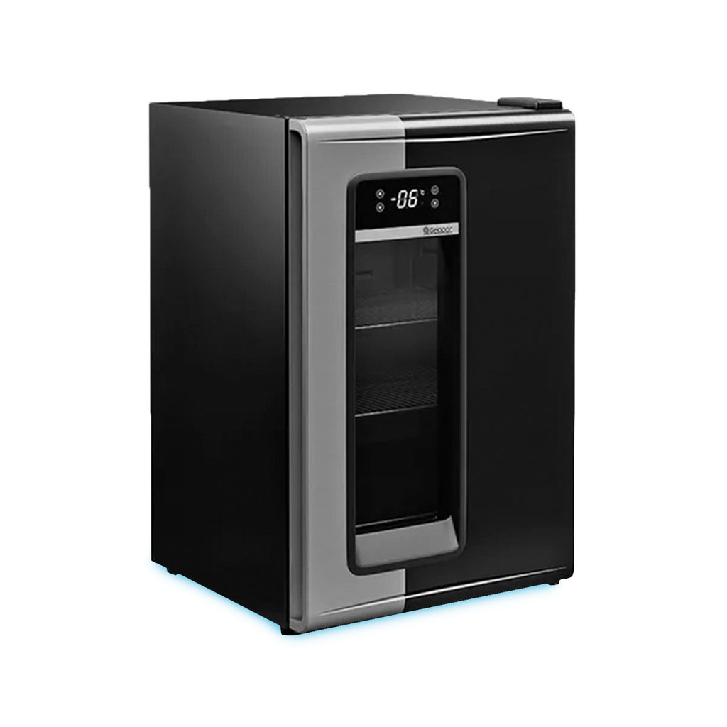 Cervejeira Gelopar GRB-100 PR Refrigerador 95 LT Frost Free Com a Cervejeira/Refrigerador GRB-100 você conserva sua bebida sempre galada na temperatura que preferir, ela possui 11 níveis de temperatura que vão de -6° a 5°C com controlador eletrônico com indicador de temperatura, baixo ruído, iluminação de LED e gás biológico, por ser compacta ela cabe espaços gourmets e áreas de lazer e varandas, Possui refrigeração ar forçado com placa fria, condensador estático, com ventilação natural, degelo automático (frost free), iluminação interna led, porta cega com visor em vidro duplo temperado, prateleiras aramadas 3 níveis reguláveis, revestimento interno plástico preto, revestimento externo aço pré-pintado preto. Refrigerador de Bebidas - Conservação e Exposição de Cervejas e Bebidas (Água, Sucos e Refrigerantes) 108 latas 350ml ou 53 long necks 350ml ou 35 garrafas 600ml ou 20 garrafas 1000ml - Refrigeração: Ar forçado com placa fria - Temperatura: -6° a +5°C - Degelo: Automático (frost free) - Controlador eletrônico com indicador de temperatura - Display digital para seleção de temperatura - Revestimento Interno: Plástico preto - Revestimento Externo: Aço pré-pintado preto - Iluminação interna LED - Porta cega com visor em vidro duplo temperado - Prateleiras aramadas - 3 níveis reguláveis - Condensador estático, com ventilação natural - Equipamento certificado conforme Portaria Inmetro nº 371/2009 - Vidros sujeitos a condensação da umidade do ar Dimensões: - Altura: 87 cm - Largura: 57 cm - Comprimento: 57 cm - Peso: 33 Kg Garantia 12 meses pelo fabricante.