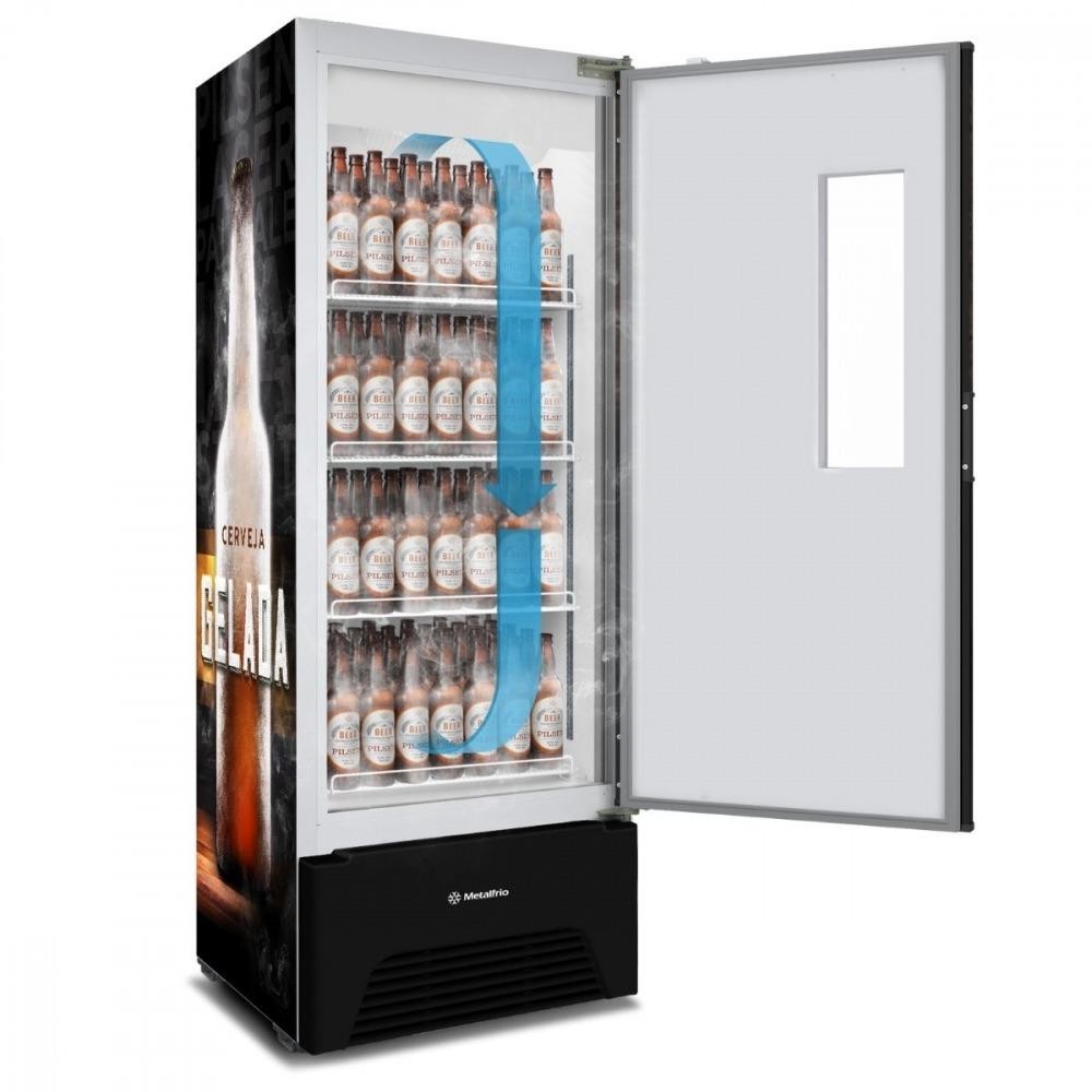 Cervejeira Metalfrio Optima 574 Litros VN50AF - 220V Esta cervejeira é a escolha perfeita para aprimorar o seu comércio, garantindo que suas bebidas estejam sempre na temperatura ideal. Com tecnologia inspirada nas grandes marcas, ela proporciona resfriamento rápido e uniforme graças ao seu evaporador aletado, que mantém o fluxo de ar constante, ideal para preservar a qualidade e o sabor de cada bebida. O design moderno e atrativo, junto à porta com visor de alta transparência, oferece excelente visualização, permitindo que seus produtos fiquem bem expostos e atraiam a atenção dos clientes. Além da eficiência no resfriamento, a cervejeira possui iluminação em LED, destacando os produtos mesmo em ambientes com baixa luminosidade, e prateleiras ajustáveis que se adaptam a diferentes formatos e tamanhos de bebidas. Seja para armazenar latas de 269 ml até garrafas de 1 litro, esta cervejeira oferece máxima flexibilidade, acomodando 729 latas de 269 ml, 576 latas de 350 ml, 384 latas de 473 ml, 320 garrafas de 355 ml, 196 garrafas de 600 ml e 108 garrafas de 1 litro. Assim, você pode organizar seu estoque de forma prática e eficiente, atendendo melhor às demandas do seu público. Outro diferencial importante é o gás refrigerante ecológico, que garante o desempenho sem agredir o meio ambiente, alinhando sustentabilidade com tecnologia de ponta. A cervejeira une versatilidade e eficiência em um só produto, proporcionando uma experiência de compra otimizada para os seus clientes, com bebidas perfeitamente refrigeradas e visualmente atraentes.