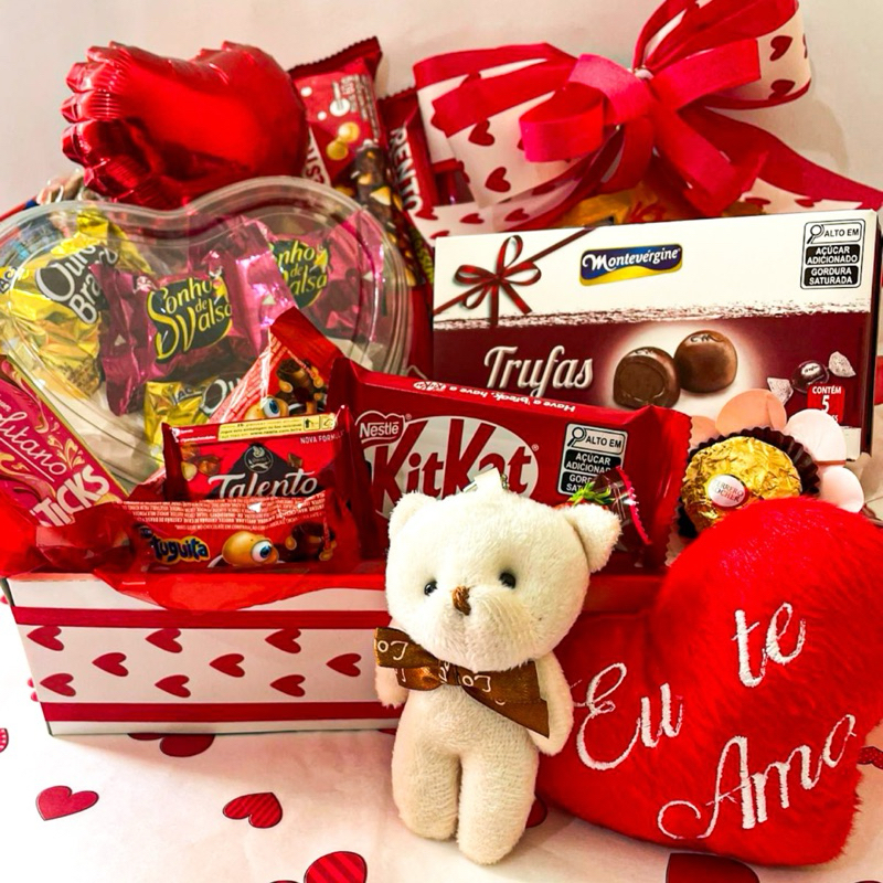 Cesta Café da Manhã com Chocolates Sortidos e Pelúcia | Presente Romântico Criativo