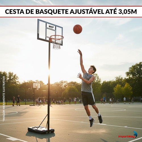 Cesta de Basquete Altura Regulável Até 3,05m Aro 45 ImportWay Transforme qualquer espaço em uma quadra com a Cesta de Basquete ImportWay! Desenvolvida para proporcionar diversão e treino, ela conta com altura regulável de até 3,05 metros, permitindo ajustar a estrutura conforme o tamanho do jogador, tornando o uso versátil para adolescentes e adultos. Especificações: • Marca: Importway • Modelo: IWJ023 • Altura do ar ajustável: de 1 ma 3,05 m • Materiais: aço de aço de 16 mm; rede de náilon; moldura da tabela de aço e tabela de PET; pressa de aço redonda de 60mm; base de PE oca • A base pode ser preenchida com 38,5 kg de água ou de areia • Diâmetro do Aro: 45 cm • Tamanho da tabela: 97 x 57 cm • Tamanho da base: 97 x 57 x 12,2 cm • Produto indicado para maiores de 14 anos. Conteúdo da Embalagem: - 01 Cesta de Basquete Altura Regulável Até 3,05m Aro 45 ImportWay "Compra Garantida" - Ao Comprar conosco a sua compra é 100% garantida, o seu dinheiro está seguro até a entrega. *Garantia 90 dias. *Imagens meramente ilustrativas Importway Importando Soluções com Qualidade, Inovação e Responsabilidade desde 2007.