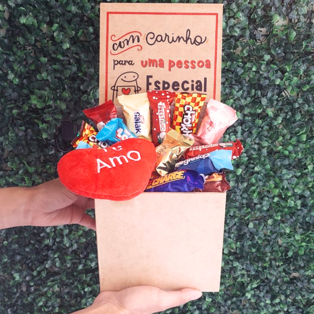 Surpreenda Quem Você Ama com uma Linda Cesta de Chocolates! 🌟 Não deixe passar em branco uma data especial! Nossa cesta de chocolates é o presente perfeito para qualquer ocasião, seja para namorados, mães, pais, amigos secretos, irmãs, filhas ou até mesmo para a Páscoa. Por que escolher esta cesta? 🍫 Chocolate é Sempre a Melhor Opção: Independentemente da ocasião, chocolates sempre trazem um sorriso ao rosto de quem você ama. Peça já a sua e garanta um mimo inesquecível! Itens Inclusos: 🧸 Pelúcia Chaveiro: Um adorável chaveiro de pelúcia para adicionar um toque de carinho. 🍬 Bombons NESTLÊ o Lacta: Com 14 unidades variadas de chocolates deliciosos. 📦 Caixa de Madeira (MDF): Multifuncional, pode ser utilizada posteriormente como porta-objetos, documentos, esmaltes, bijuterias, lenços, ou o que preferir. ☕ UMA 1 Caneca de Porcelana Estampada: Escolha o tema que mais combina com a pessoa presenteada. ❤️ Coração de Pelúcia: (23cm de largura x 10cm de altura) para um toque extra de afeto. (caso não queira informar após a compra) 🎀 Laço Pronto: Para uma apresentação impecável. 💌 Cartão Brinde: Com espaço para escrever "de" e "para", além de uma mensagem especial. Dimensões da Cesta caixa mdf: Comprimento: 15cm Largura: 15cm Altura: 15cm Envio Rápido: A embalagem vai pronta para presentear. Não personalizamos itens individuais. Não realizamos trocas de itens. Transforme qualquer ocasião em um momento inesquecível com nossa linda cesta de chocolates. Peça agora e surpreenda quem você ama! Compre Agora e Deixe o Amor e a Doçura Falar Mais Alto!