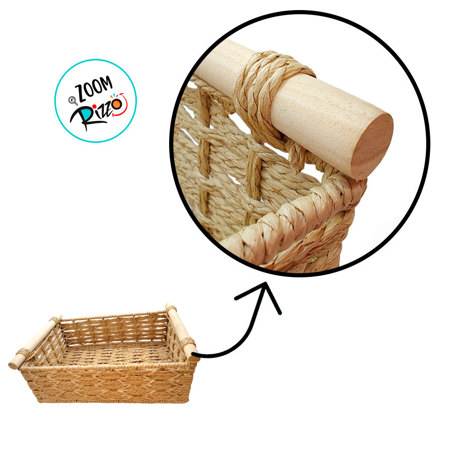 Cesta Decorativa Veredas de Fibra Natural com Alça de Madeira - 30x20x9,9cm - 1 unidade - Rizzo
