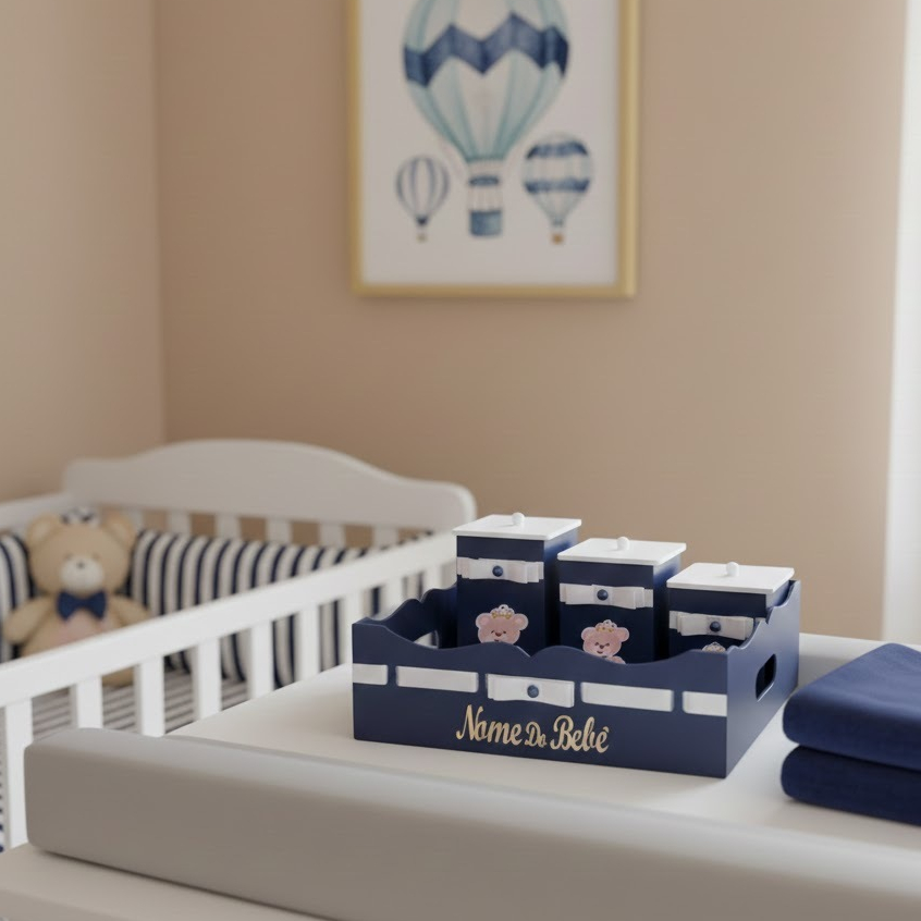 Cesta Kit Higiene Urso Principe em Madeira Mdf Personalizado com nome