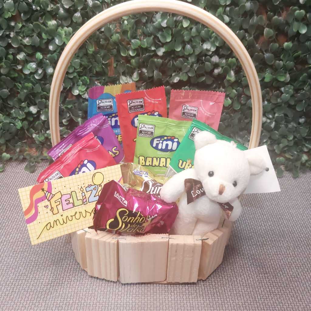 Cesta Mini Com Guloseimas Fini+ Chaverinho Para Presentear Amigo Secreto, Natal, Amiga,Sobrinho,Namorado..
