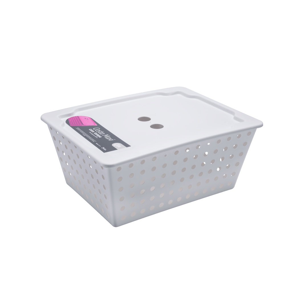 Práticas e versáteis, as cestas organizadoras podem ser usadas em qualquer parte da casa, especialmente para guardar objetos no banheiro ou brinquedos nos quartos das crianças. Além disso, sua tampa ajuda a aproveitar melhor os espaços, pois permite o empilhamento das cestas. Práticas para armazenar e organizar os mais diferentes objetos em qualquer ambiente, as cestas tem um design que mostra tudo o que está dentro dela, facilitando na hora de procurar o que está guardado. Material: Polipropileno