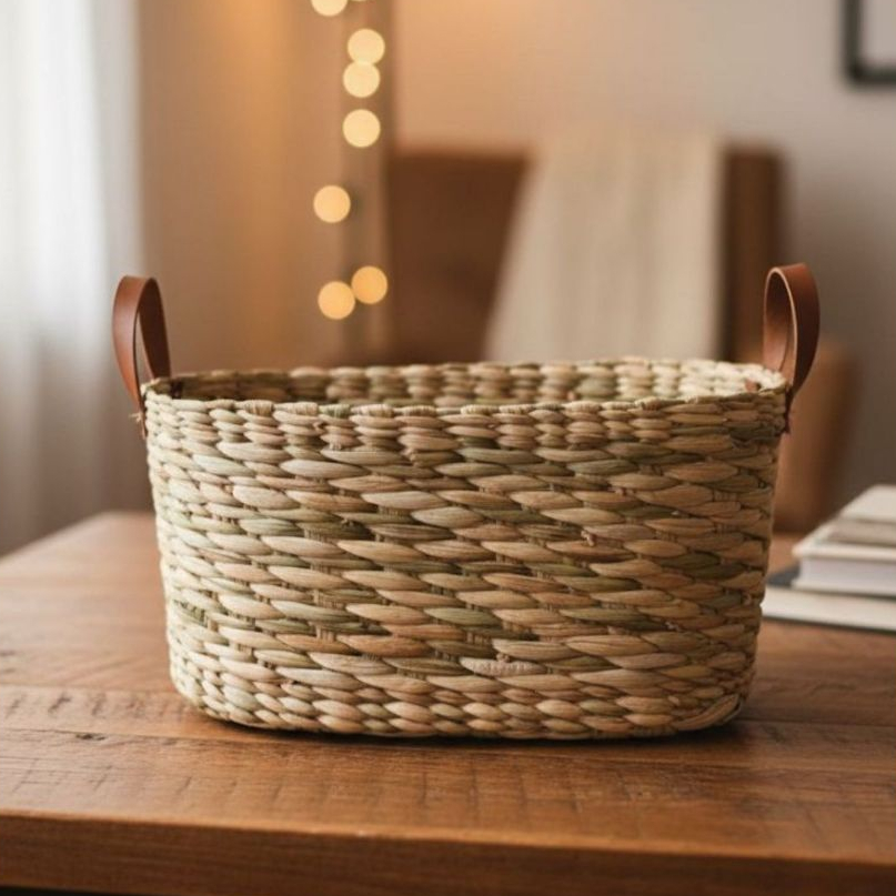 Cesta paozeira G em Palha de Taboa Com Alça de Couro