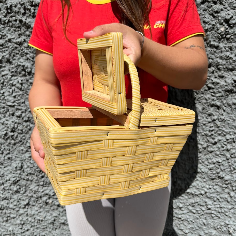 Cesta Piquenique com Alça e Tampa Mini Cesta Decorativa Estilo Vime