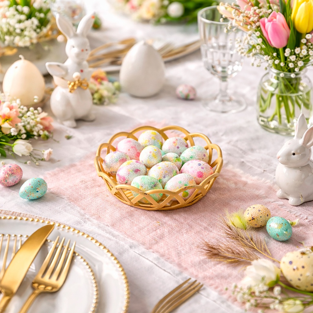 A Cestinha de Páscoa com Ovinhos Coloridos Glitter é aquele item que faz toda a diferença na decoração. Mais do que um simples enfeite, ela cria um clima acolhedor, alegre e sofisticado, perfeito para celebrar a Páscoa com família e amigos. A combinação da cestinha com 12 ovinhos decorativos em isopor com acabamento glitter traz brilho na medida certa, deixando o ambiente leve, delicado e cheio de charme. Visual delicado com toque de brilho Os ovinhos possuem cores suaves com acabamento em glitter, ideais para quem busca uma decoração elegante sem exageros. O brilho discreto valoriza mesas postas, aparadores, cestas de presente e kits personalizados. Versatilidade para diferentes usos Essa cestinha se adapta facilmente a vários tipos de decoração: Centro de mesa de Páscoa, como ponto focal. Cestas de presente personalizadas. Decoração de mesas, aparadores e vitrines. Kits de Páscoa e encomendas especiais. Decoração residencial ou eventos temáticos. É uma solução prática e pronta para usar. Tamanho compacto e funcional Ovinhos: aproximadamente 2,5 cm Cestinha: 15 x 3,5 cm Um tamanho ideal para decorar sem ocupar muito espaço, mas com presença visual. Materiais leves e reutilizáveis Produzida com isopor e plástico, a cestinha é leve, resistente e pode ser reutilizada em outras Páscoas ou até em diferentes datas comemorativas, garantindo ótimo custo-benefício. Produto: Cestinha decorativa de Páscoa com ovinhos Quantidade: Contém 12 ovinhos Tamanho dos ovinhos: 2,5 cm Tamanho da cestinha: 15 x 3,5 cm Material: Isopor e plástico Indicação: Decoração de Páscoa para casa, festas, eventos e vitrines Os ovinhos são comestíveis? Não. São itens exclusivamente decorativos. A cestinha já vem montada? Sim. O produto vai pronto para uso, exatamente como nas imagens. As cores são iguais às fotos? Sim. As cores são sortidas e seguem o padrão apresentado nas imagens do anúncio. Posso reutilizar a cestinha? Sim. Os materiais são leves e duráveis, permitindo reutilização em outras decorações. O pacote vem com quantas unidades? O conjunto acompanha 1 cestinha com 12 ovinhos decorativos. Dê um toque especial e elegante à sua decoração de Páscoa. Garanta agora a Cestinha de Páscoa com Ovinhos Coloridos Glitter e encante em cada detalhe!
