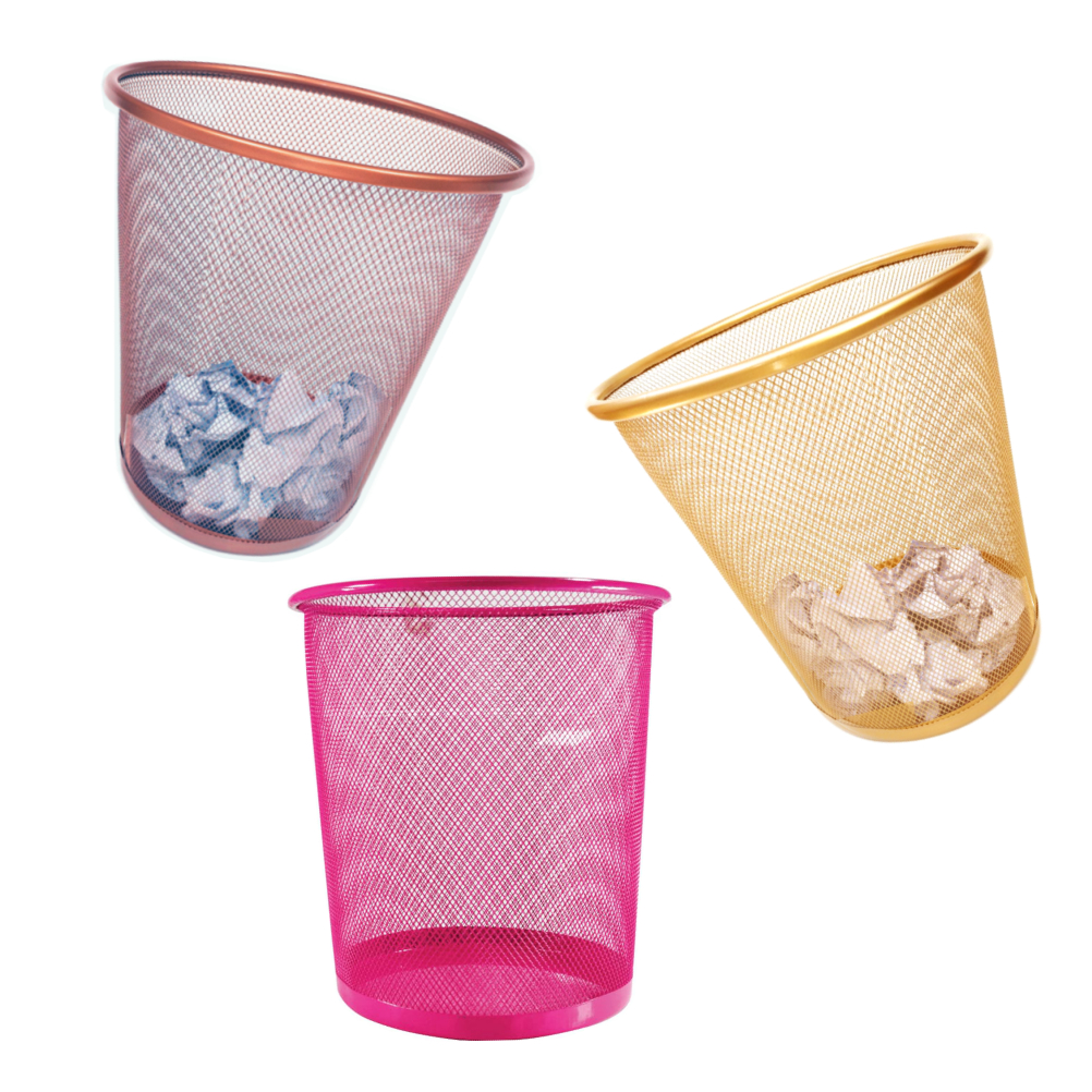 Cesto Aramado Organizador Escritório Dourado / Rosê Gold Lixo Lixeira Metal