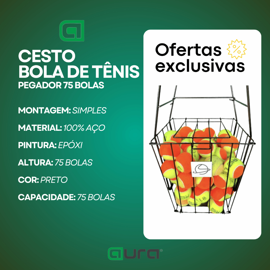 Cesto Bola Tênis Beach Tennis Pegador 75 Bolas Padel Esporte
