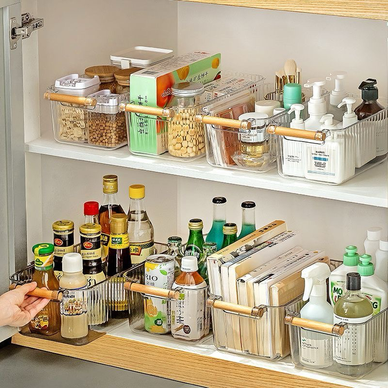 cesto com alça de bambu grande de plastico organizadora multiuso