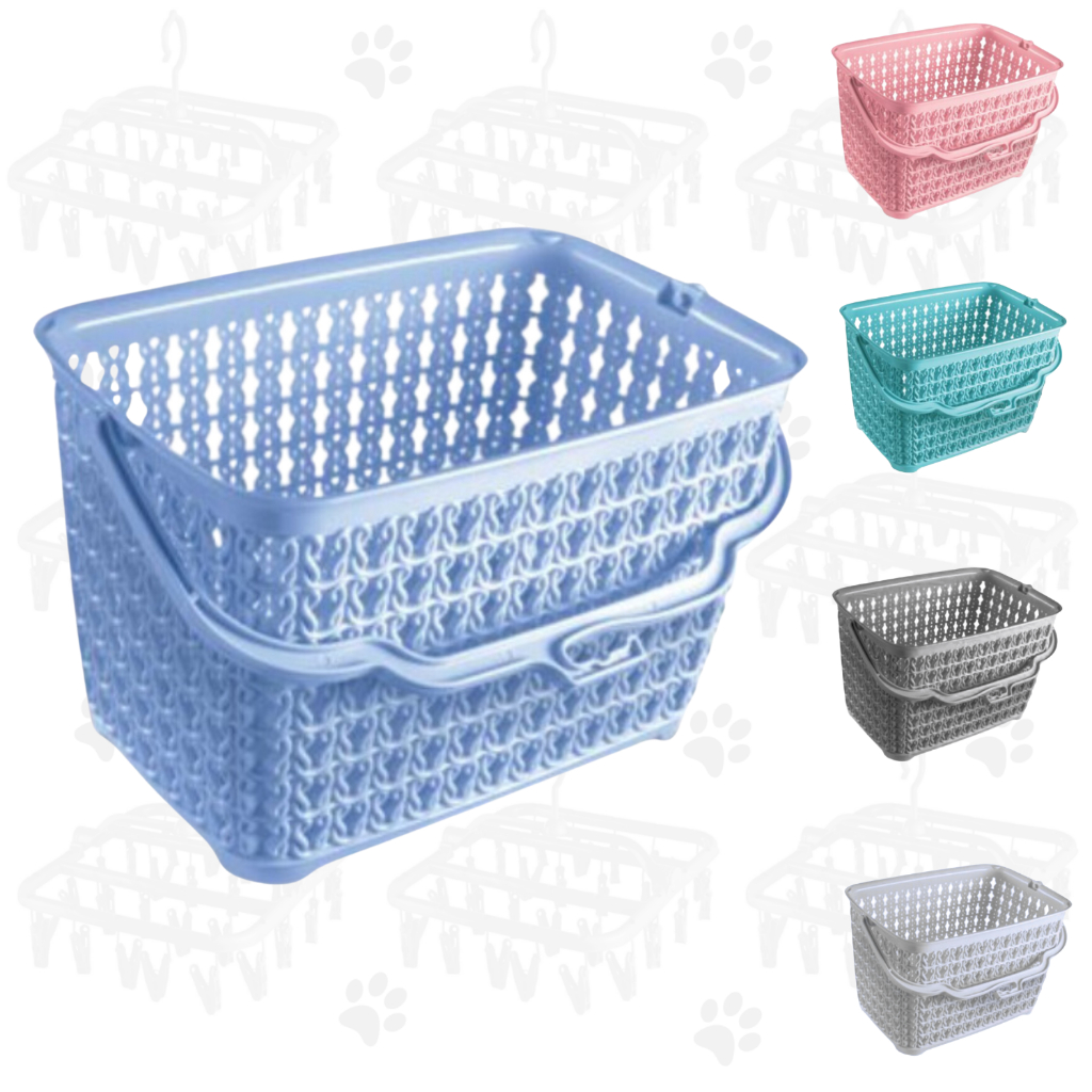 Cesto com Alça Multiuso p/ Prendedores de Roupas Plástico Reforçado com Trama