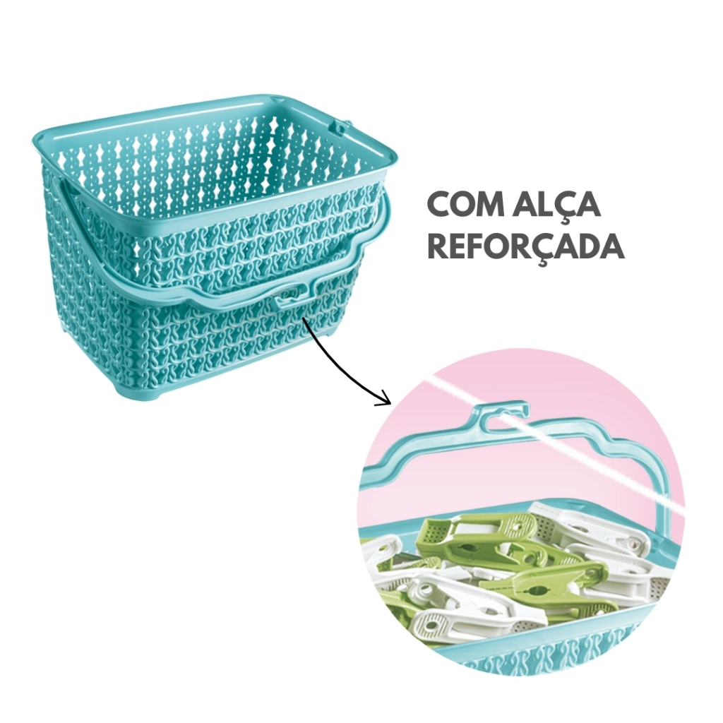 CESTO COM ALÇA MULTIUSO TRAMA CESTO ORGANIZADOR PLÁSTICO REFORÇADO LIG BRIN