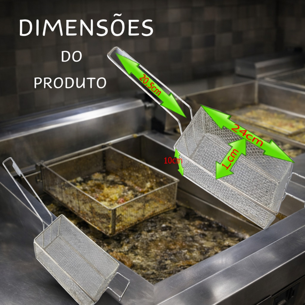 Cesto D Fritura Em Tela 24x11x10cm P Fritadeira Retangular