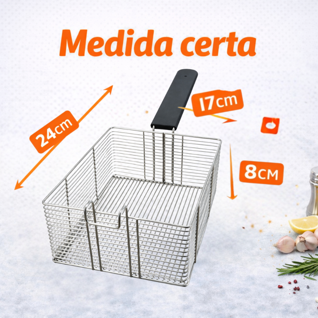 Cesto de Fritura com Cabo Reforçado 24x17cm para Fritadeira 5L e 10L Gomes inox Profissional