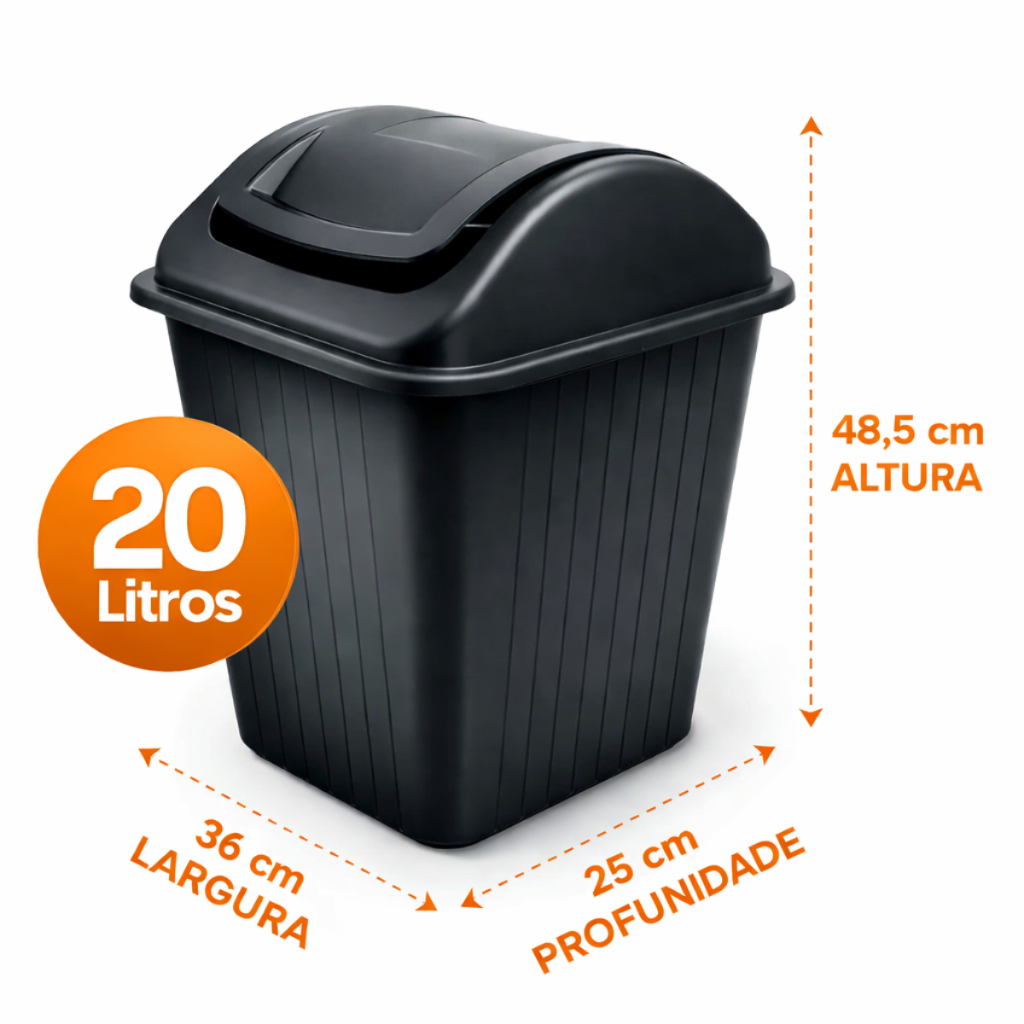 🗑️ Design moderno, praticidade e resistência para o seu dia a dia. A Lixeira Retangular com Tampa Vai e Vem 20L é a escolha ideal para quem busca manter o ambiente limpo, organizado e com um toque de elegância. Seu formato retangular inteligente otimiza o espaço, sendo perfeita para cozinhas, banheiros, escritórios, lavanderias e áreas de serviço. A tampa vai e vem garante praticidade e higiene, permitindo o descarte dos resíduos sem contato direto, evitando odores e facilitando o uso no dia a dia. Fabricada em polipropileno (PP) de alta resistência, é leve, durável e fácil de limpar, suportando o uso contínuo sem deformar. Com capacidade de 20 litros, é ideal tanto para uso doméstico quanto corporativo, unindo eficiência, modernidade e praticidade. Seu acabamento fosco e cor preta elegante combinam facilmente com qualquer ambiente, proporcionando um visual discreto e sofisticado. Especificações: Dimensões: 48,5 cm (A) x 36 cm (L) x 25 cm (P) Capacidade: 20 Litros Material: Polipropileno (PP) Cor: Preto Peso: 850 g Contém: 01 Cesto Retangular com Tampa Vai e Vem 20L – Preto