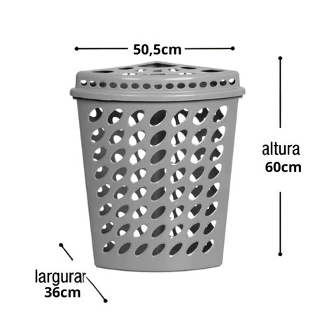 *INFORMAÇÕES SOBRE O PRODUTO* O Cesto Telado Triangular 43,7L é a solução perfeita para quem busca praticidade, organização e eficiência no armazenamento de diversos itens. Seu formato triangular inovador foi projetado para otimizar o uso do espaço, tornando-o ideal para ambientes com áreas limitadas, como cantos ou estantes pequenas. Com uma capacidade generosa de 43,7L, esse cesto oferece amplo espaço para acomodar desde roupas até ferramentas ou brinquedos, mantendo seu ambiente organizado e visualmente mais limpo. Design Inteligente e Funcional Com dimensões de 60 x 36 x 50,5 cm, o cesto se adapta facilmente a diferentes tipos de espaço, seja no quarto, lavanderia, escritório ou até mesmo em ambientes comerciais. Seu design triangular aproveita ao máximo os cantos, transformando áreas muitas vezes negligenciadas em locais úteis para o armazenamento. Ele é ideal para ser colocado em armários, closets, estantes ou até mesmo embaixo de móveis, otimizando a organização de maneira inteligente e eficiente. Ventilação e Durabilidade A estrutura telada não só confere um visual moderno, mas também garante ventilação ideal para os itens armazenados. Isso é especialmente importante para itens que precisam de circulação de ar, como roupas, calçados, brinquedos e até materiais de escritório. A ventilação ajuda a evitar o acúmulo de umidade e odores, mantendo os seus itens frescos e livres de mofos. A resistência do material é outra grande vantagem. Fabricado para suportar o peso de itens pesados e garantir uma longa vida útil, o cesto é uma excelente escolha para quem busca qualidade e durabilidade. O formato e a construção robusta permitem que o cesto seja utilizado em diversos tipos de ambiente sem perder sua funcionalidade ou aparência.