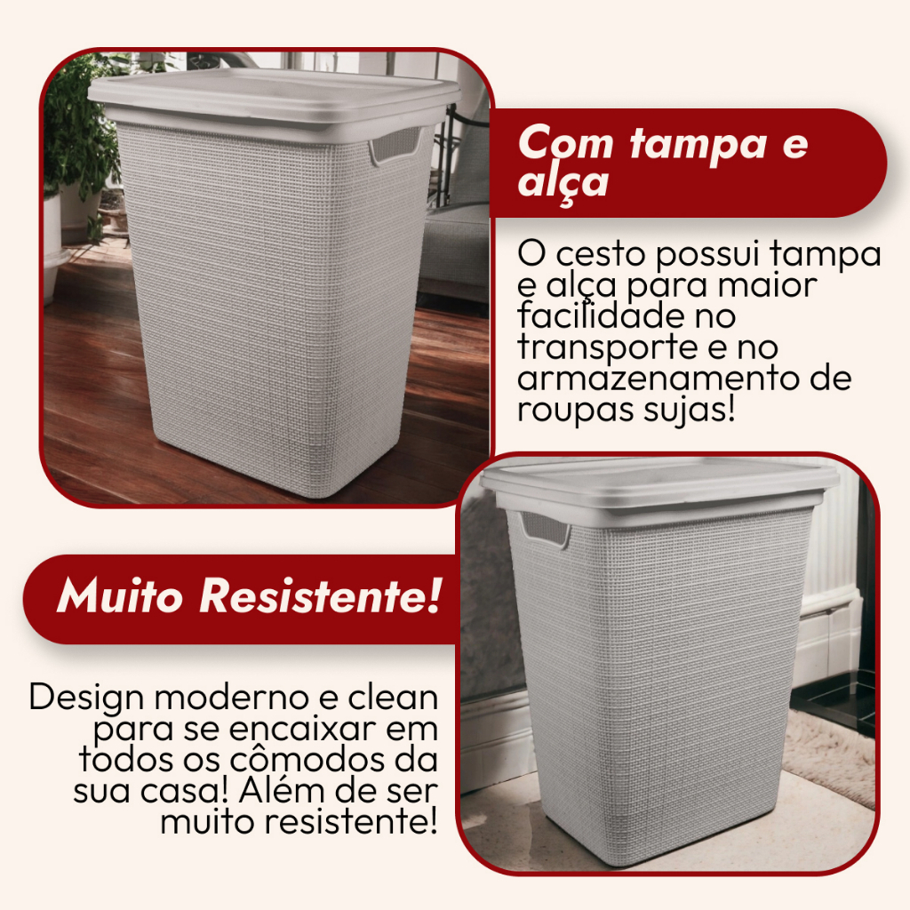 | Cesto de Roupa Suja com Tampa Organizador de 45 Litros Branco Multiuso este produto | R$ 65,90 | 18% | 4.7/5 | 15 |