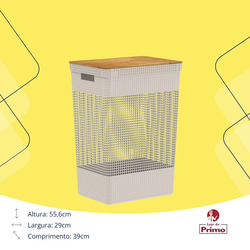 Cesto de Roupas 49L Tampa Bambu Bege Lavanderia Quarto Banheiro Área de Serviço OU