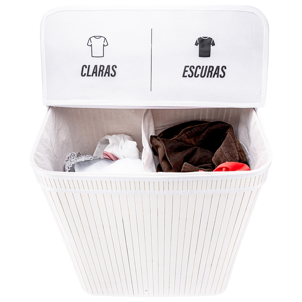 Cesto de Roupas Com Divisória Roupeiro Bambu Retangular Artiko Pratic+ Com Tampa 105L