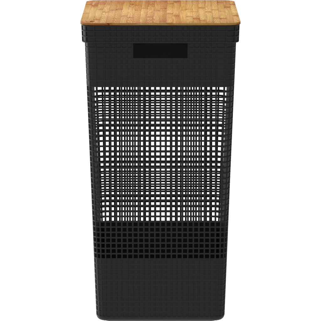 Cesto De Roupas Grid Com Tampa De Bambu 49 Litros - Preto OU