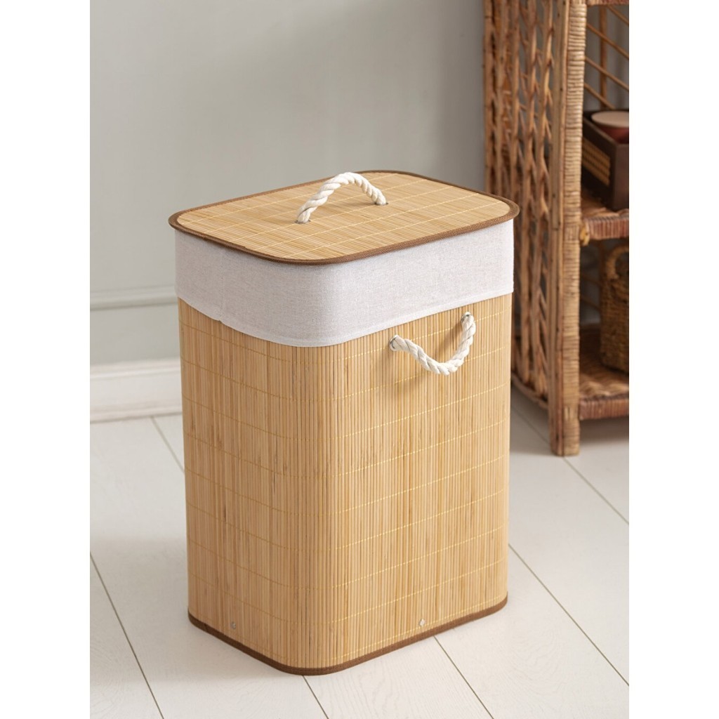 Cesto de Roupas Multiuso Roupeiro Bambu Retangular Artiko Pratic Organizador Com Tampa 60L