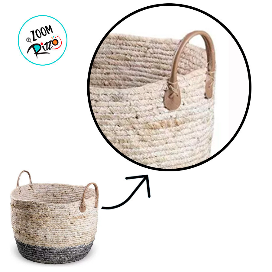 Cesto decorativo Elegance de Seagrass Natural e Cinza com alça - 24x24x19cm - 1 unidade - Rizzo