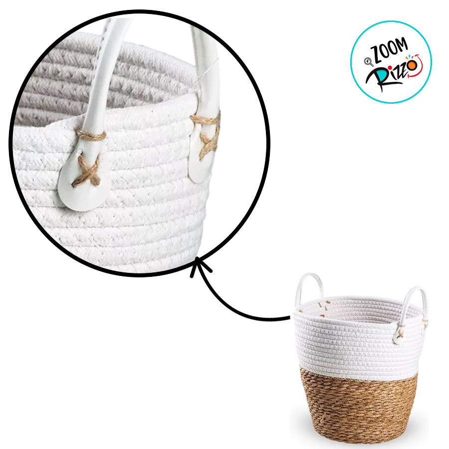 Cesto Decorativo Philippe de Seagress e Algodão com Alças - 36x36x40cm - 1 unidade - Rizzo