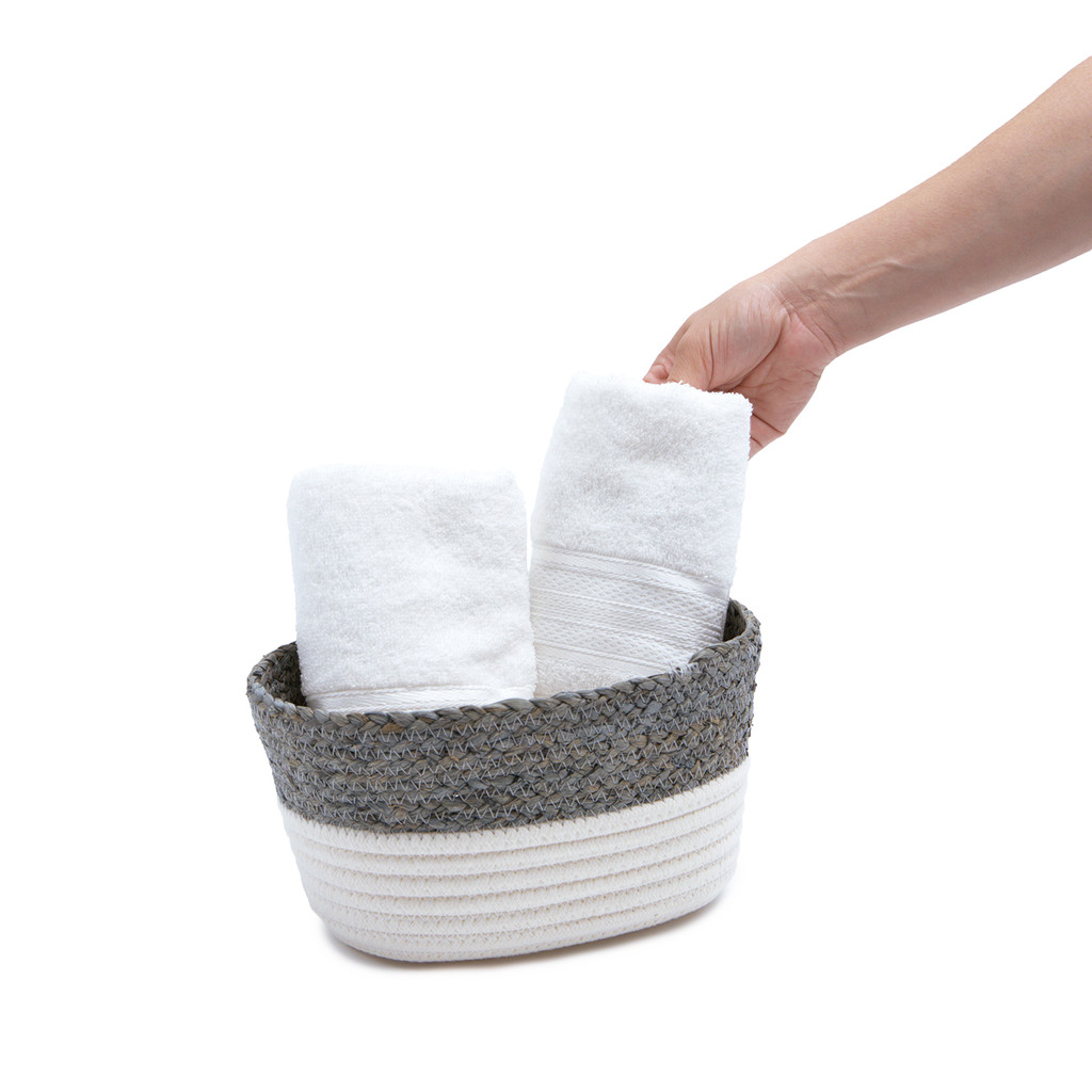 Esse é o cesto duo corda 12,5 cm da OIKOS. Prático: ótimo para armazenar e organizar mantas, roupas, toalhas enroladinhas, acessórios, livros, brinquedos, e muito mais. Detalhe do material: todo feito em cordas, ele é bem resistente para sustentar todos seus itens. Versátil: vai bem em qualquer ambiente da casa: na sala, no quarto, no escritório, no banheiro. você que manda! Funcional: esse cesto deixa tudo em ordem na casa, sem falar que otimiza os espaços e ainda traz um ar mais convidativo para cada cantinho. Duo decorativo: o charme desse cesto fica por conta do duo de cores. branco e cinza é uma combinação neutra que harmoniza com diversos estilos de decoração, deixando sua casa mais aconchegante e cheia de bossa. Duo de cordas: além da dupla de cores, esse cesto conta com uma super dupla de cordas. uma é feita de algodão e a outra de palha de milho: materiais tendência na decoração. Dimensões do produto: Comprimento: 20cm Altura: 16cm Largura: 12,5cm