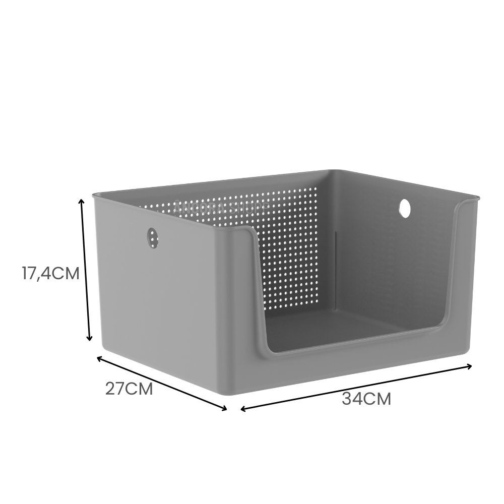Os cestos possuem diversos tamanhos, são empilháveis e versáteis. São diversas opções com cores neutras e acabamento fosco, que combinam com qualquer ambiente. Podem ser utilizados em closets, cozinhas, lavanderias ou até mesmo na sala de estar para decorar. Cestos multifuncionais Organize diferentes ambientes da casa. Abertura frontal Facilita o acesso e visualização do conteúdo. Organize e decore Decore sua casa com a sofisticação das formas minimalistas. Características: Medidas: Profundidade: 34cm Largura: 27cm Altura: 17,4cm Especificações Técnicas: Matéria-Prima: Polipropileno Cor/Acabamento: Preto, Chumbo e Bege