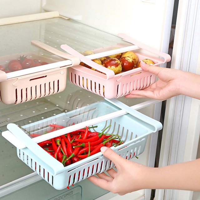 Cesto Organizador Extensível Plástico Porta Geladeira Gaveta