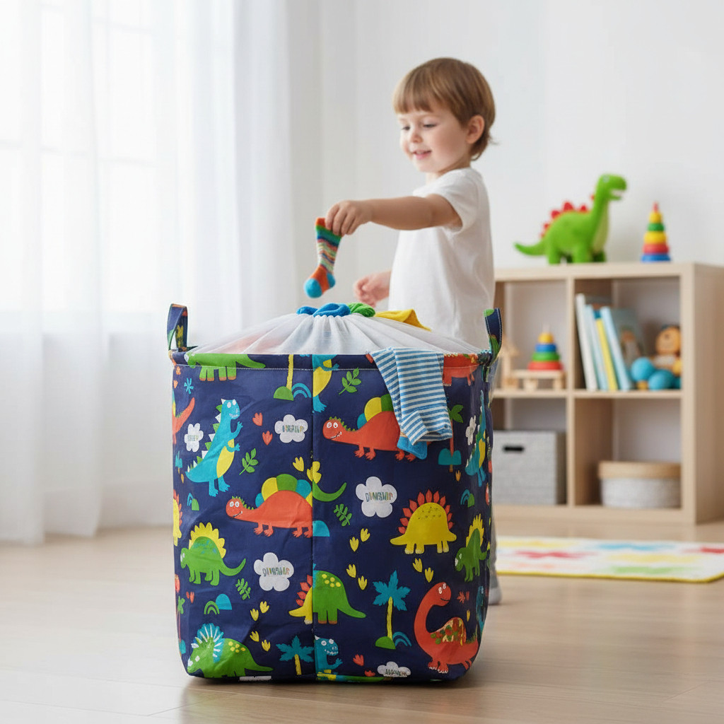 Cesto Organizador Quadrado Dinos 90L TNT Brinquedos Roupas