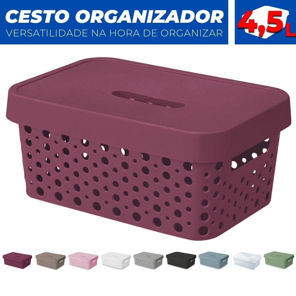 Cesto Organizador Rattan c/Tampa 4,5 Litros Multiuso de Plástico
