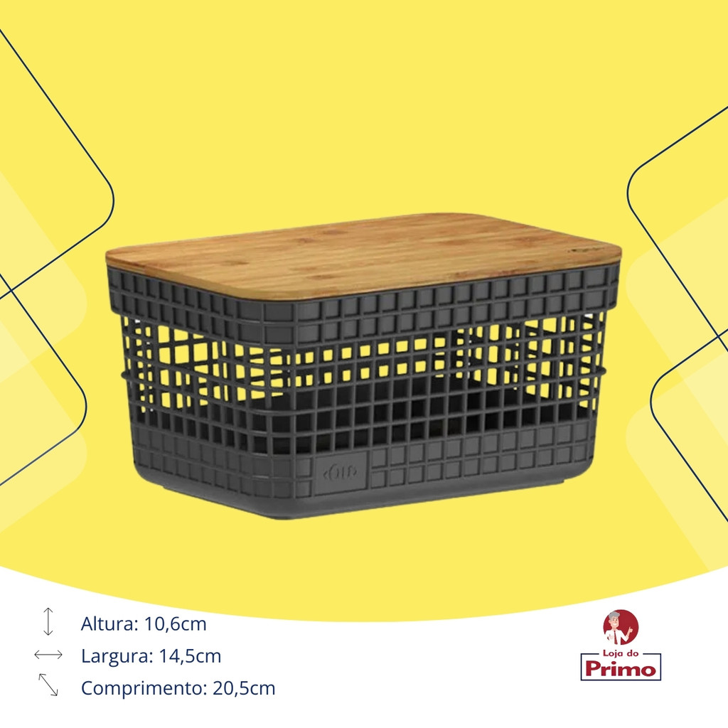 Cesto Organizador de Roupas com Tampa de Bambu - 2,5 L, Cor Preto Descrição: Mantenha suas roupas organizadas com estilo e praticidade com o Cesto Organizador de Roupas de 2,5 litros. Perfeito para a lavanderia, área de serviço, banheiro ou quarto, este cesto combina funcionalidade e um design moderno que se destaca em qualquer ambiente. A tampa de bambu adiciona um toque natural e elegante, enquanto o corpo na cor preta oferece um visual sofisticado e contemporâneo. Características Principais: - Capacidade de 2,5 Litros: Com espaço amplo, este cesto é ideal para armazenar roupas sujas ou limpas, garantindo que sua lavanderia, quarto ou banheiro fiquem sempre organizados. - Tampa de Bambu Natural: A tampa feita de bambu não só proporciona um toque natural e sofisticado, mas também ajuda a manter as roupas fora de vista, preservando a aparência limpa e arrumada do ambiente. - Design Moderno e Sofisticado: Com um corpo na cor preta e linhas elegantes, o cesto se adapta facilmente a diferentes estilos de decoração, adicionando um elemento de design funcional ao espaço. - Material Durável e Resistente: O cesto é fabricado em material resistente, projetado para suportar o uso diário sem perder sua forma ou funcionalidade. - Leve e Fácil de Transportar: Mesmo com sua grande capacidade, o cesto é leve e possui alças laterais que facilitam o transporte, permitindo que você mova-o facilmente pela casa. Especificações: - Material: Plástico resistente com tampa de bambu - Capacidade: 2,5 litros - Dimensões: 200 x 140 x 102 - Cor: Preto com tampa de bambu - Peso: 0,277g Benefícios: Organização e Estilo: Mantenha suas roupas organizadas de maneira elegante, com um cesto que combina funcionalidade e design. Versatilidade de Uso: Adequado para diversos ambientes da casa, como lavanderia, área de serviço, banheiro ou quarto, adaptando-se às suas necessidades de armazenamento. Durabilidade e Sustentabilidade: A combinação de materiais duráveis e o uso de bambu sustentável garantem que o cesto seja tanto funcional quanto ecologicamente responsável. Por que Escolher o Cesto Organizador de Roupas com Tampa de Bambu? O Cesto Organizador de Roupas com Tampa de Bambu é a escolha ideal para quem busca uma solução prática e estilosa para o armazenamento de roupas. Com uma capacidade de 2,5 litros, ele é perfeito para manter a organização da sua casa, enquanto seu design elegante e a tampa de bambu adicionam um toque de sofisticação ao ambiente. Adquira agora o Cesto Organizador de Roupas e transforme sua rotina com organização e estilo! Loja do Primo Variedades!