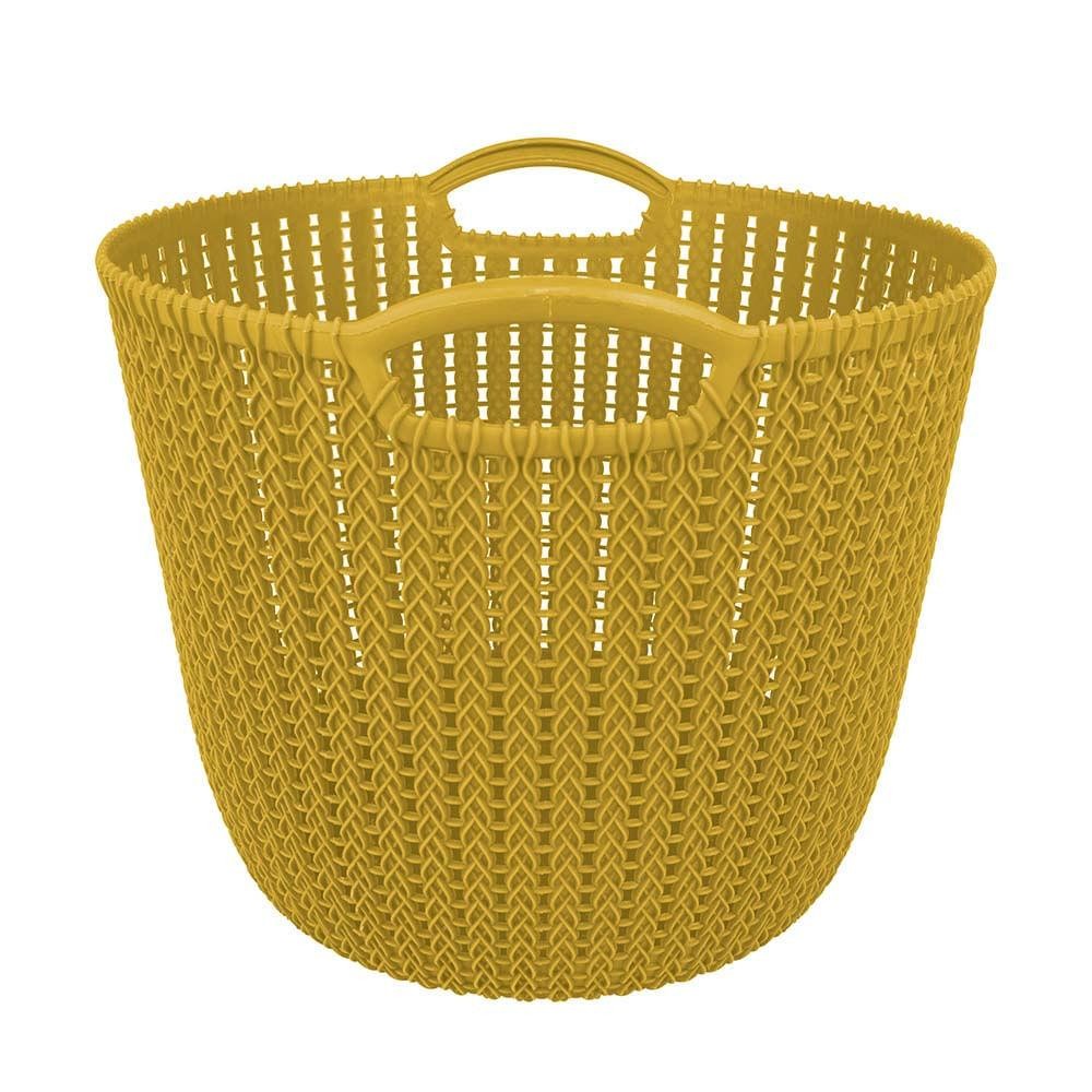 Cesto Trançado Circular Médio Mostarda