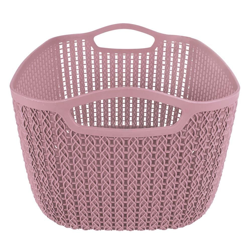 Cesto Trançado Retangular Alto Grande Rosa Antigo