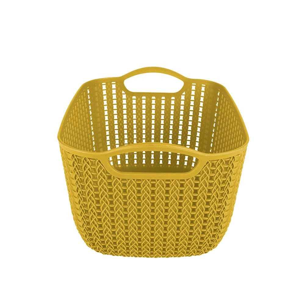 Cesto Trançado Retangular Alto Médio Mostarda